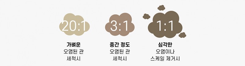 ※ 배관 세척 시에는 설비 종류(쿨러, 열교환기, 칠러 등), 오염 정도, 실 담수량, 세척 가능 시간에 맞게 희석 비율을 조정해야 합니다.