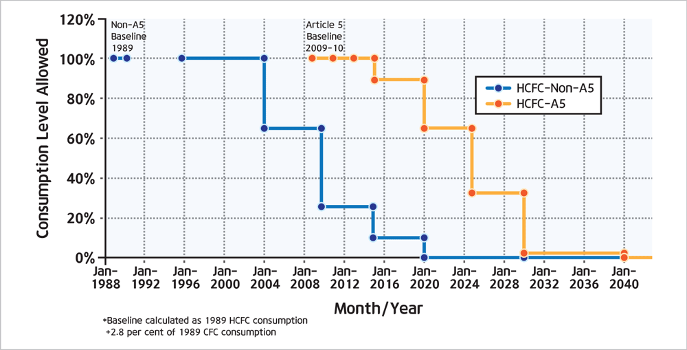 HCFC를 모두 폐기시키도록 규정하고 있습니다.